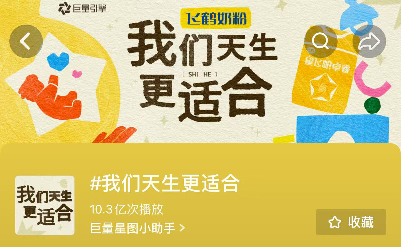 这些扎根真实生活的内容,打破了品牌与用户之间的沟通壁垒,让飞鹤的专业实力与温暖陪伴形象深入人心,也让#我们天生更适合 话题收获超10.3亿次播放量,形成“科学营养×情绪陪伴×真实家庭”三位一体的内容生态。