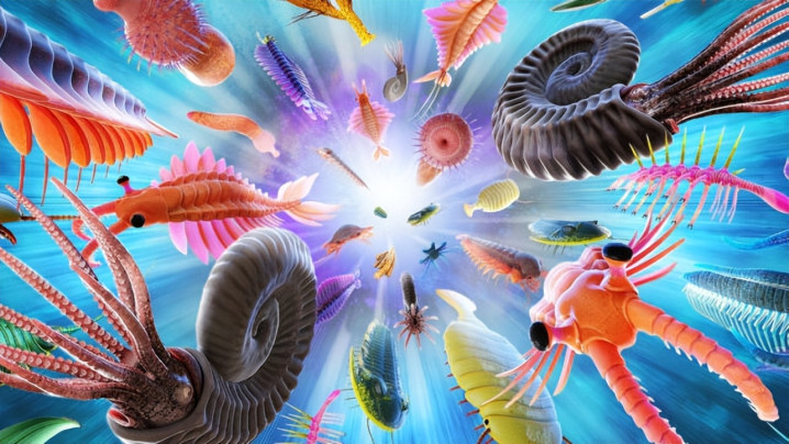 寒武纪大爆发是地球生命史上最戏剧性的事件之一。在短短数百万年内,几乎所有现代动物门类的祖先都出现了。三叶虫在海底爬行,带壳的软体动物开始建造家园,节肢动物发展出复杂的分节躯体,海星和海胆的远祖也加入了这场生命盛宴。