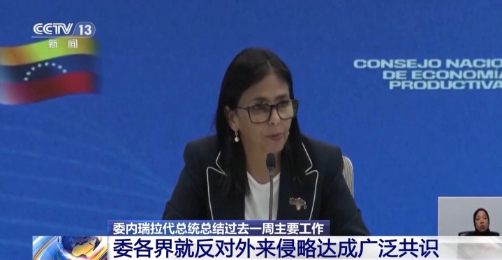 总台记者宫祥诚:当地时间18日,委内瑞拉代总统罗德里格斯通过社交媒体发文,总结了她过去一周的主要工作,包括前往全国代表大会发表年度国情咨文,并出席2026年首次全国经济委员会会议,与各生产部门代表就国家经济发展进行交流等。